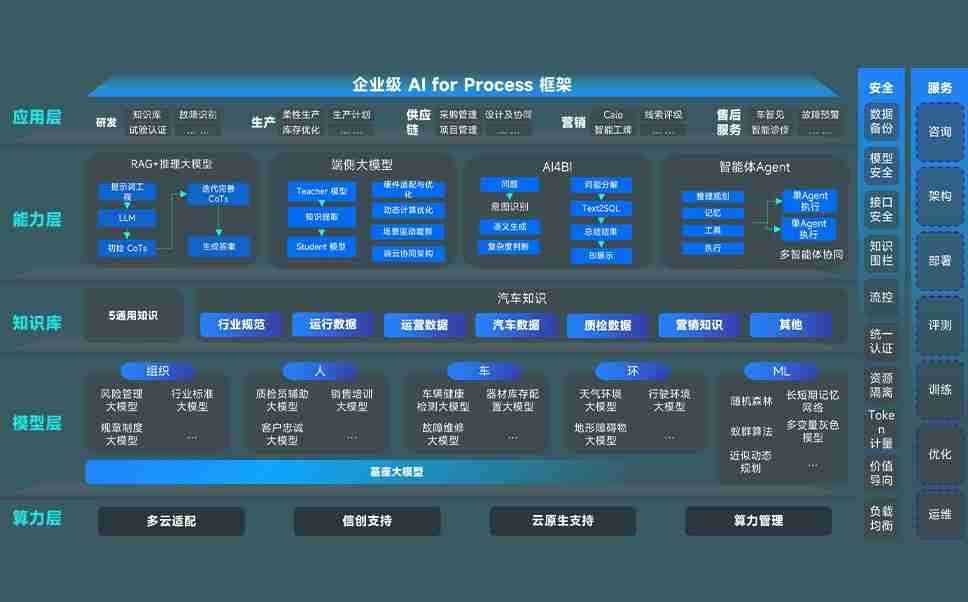 先锋娱乐问学智车解决方案是一套基于AI技术的汽车行业智能化系统,,覆盖从底层算力到顶层AI应用的全栈方案。。方案由算力层、、、、模型层和应用层组成:算力层,,,方案支持多种一体机配置,,,具备云端灵活部署、、多云适配以及动态优化计算资源的能力;模型层,,,,先锋娱乐问学平台版提供了企业级AI应用一站式构建与管理平台,,,,支持基于后训练强化技术的汽车企业专属模型的训练、、、评测和运营;应用层,,,,先锋娱乐问学DeepSeek版提供包括超级员工、、、、智能招采、、、、智能营销、、、、智能客服、、、、AI for BI等一系列解决方案,,,可助力汽车行业实现数字化转型,,,,让管理更智能、、响应更敏捷。。